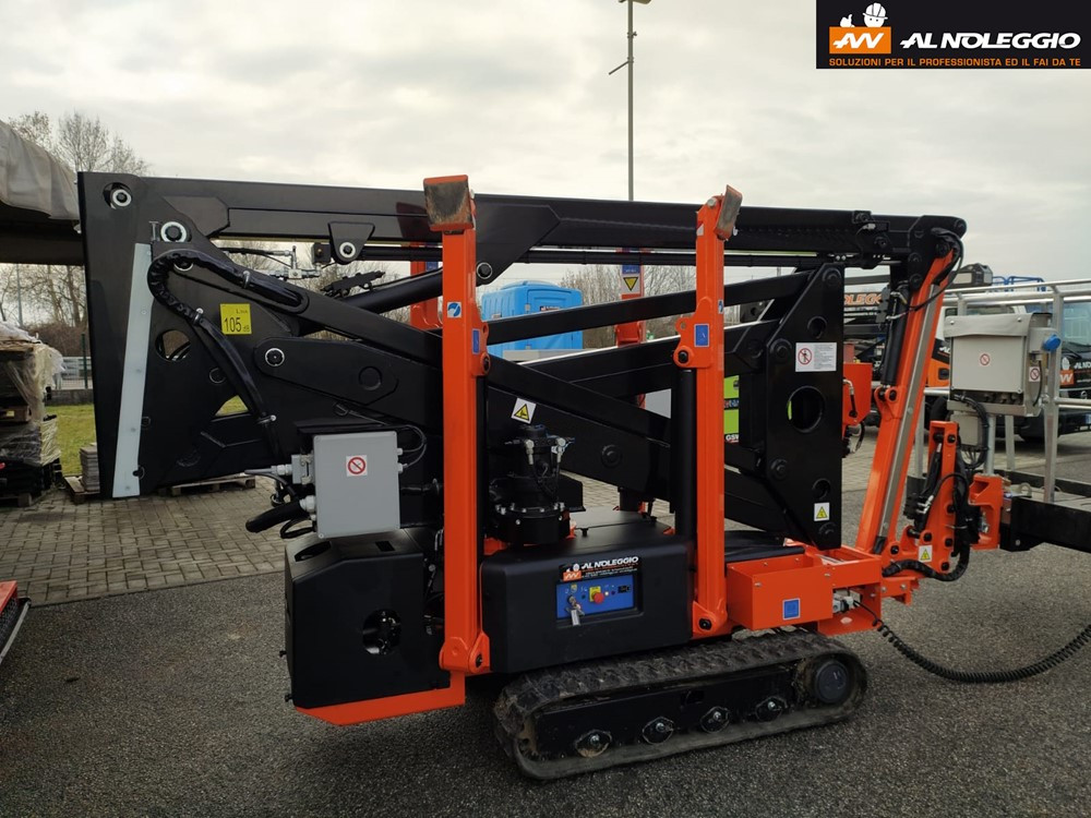 Piattaforma ragno cingolata di marca CTE modello TRACCES 170 di portata 200 kg, con propulsione Benzina, altezza di lavoro 17,00 mt, a noleggio.