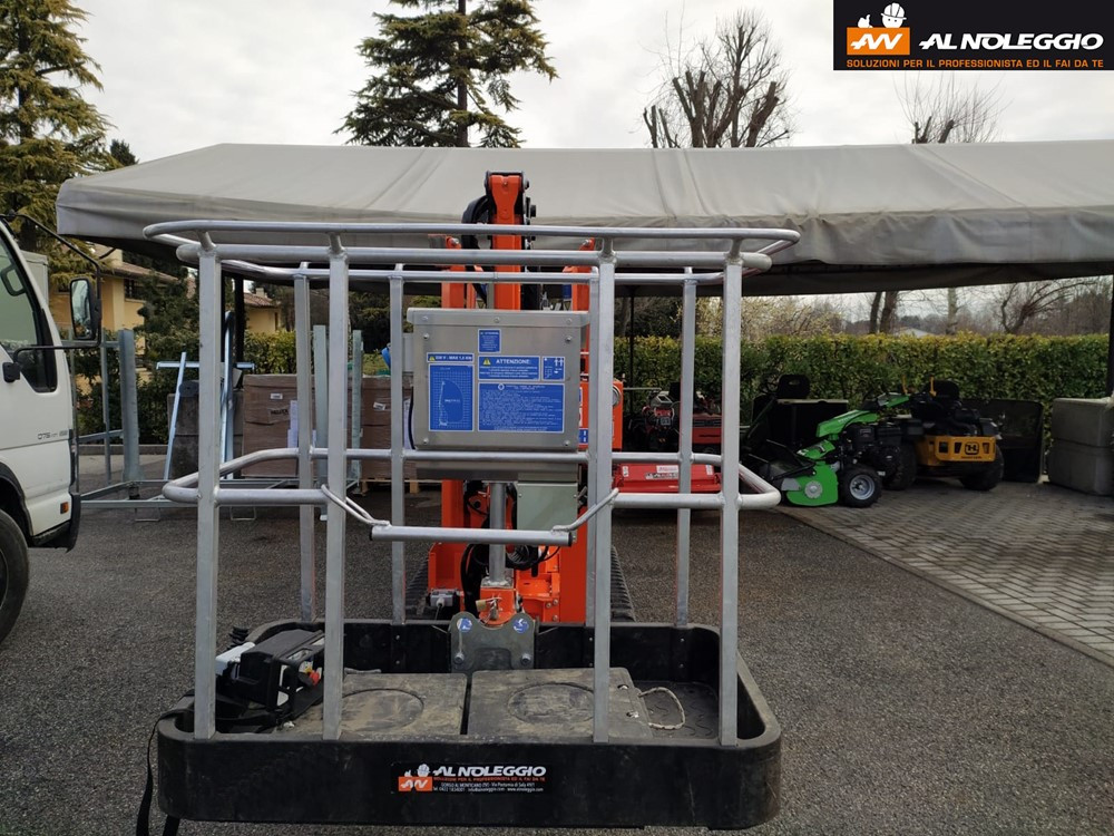 • Braccio a due elementi articolati + braccio telescopico (braccio base + uno sfilo) + jib • Rotazione torretta di 330° su ralla • Comandi elettroidraulici proporzionali singoli dalla navicella • Avviamento/arresto motore dalla navicella • Navicella con base in materiale composito e parapetto in alluminio • Livellamento navicella a parallelogramma idraulico • Cella di carico per controllo carico in navicella • 4 stabilizzatori a piazzamento oleodinamico con sensori di contatto terreno • Carro allargabile • Abbassamento del carro, altezza 1,99 m * sbraccio e altezza di lavoro possono variare di ± 3% a seconda di variazioni nella fabbricazione o condizioni di lavoro. SPECIFICHE Altezza 17 m* Sbraccio 7,5 m* Portata 200 kg Dimensioni navicella 1300x700x1100 mm Dimensioni mezzo chiuso 800x2000x4250 mm Peso totale 2050 kg Altezza piano calpestio 15 m