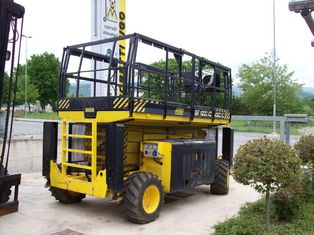 Piattaforma a pantografo di marca AIRO modello SF 1200 4WD di portata 700 kg, con propulsione , altezza di lavoro 14,00 mt, in vendita.