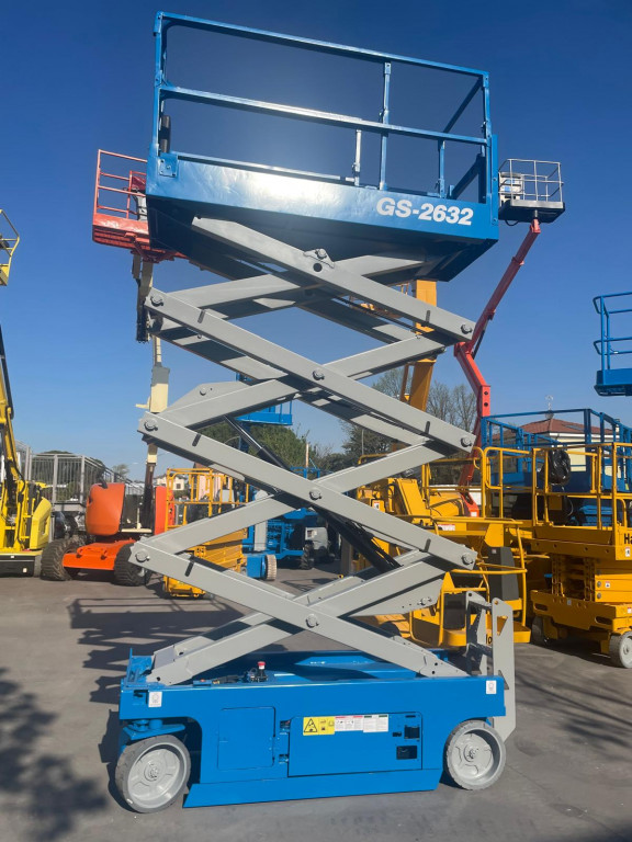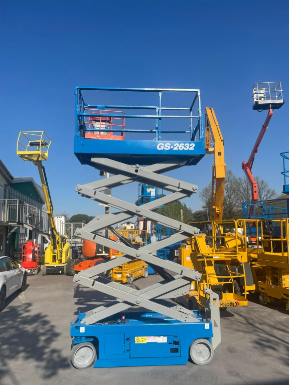 Piattaforma a pantografo di marca Genie modello GS-2632 di portata 227 kg, con propulsione Elettrica, altezza di lavoro 10,00 mt, in vendita.