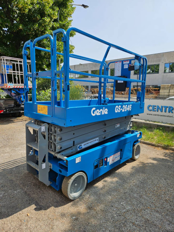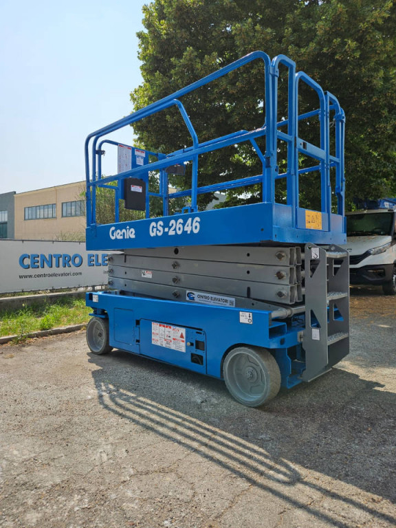 Piattaforma a pantografo di marca Genie modello GS 2646 di portata 454 kg, con propulsione Elettrica, altezza di lavoro 10,00 mt, in vendita.