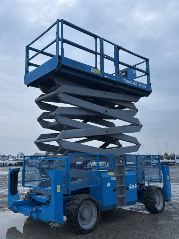 Piattaforma a pantografo di marca Genie modello GS 5390 RT di portata 80 kg, con propulsione Diesel, altezza di lavoro 18,15 mt, in vendita.