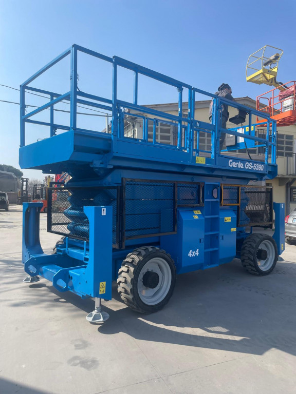 Piattaforma a pantografo di marca Genie modello GS-5390 di portata 680 kg, con propulsione Diesel, altezza di lavoro 18,00 mt, in vendita.