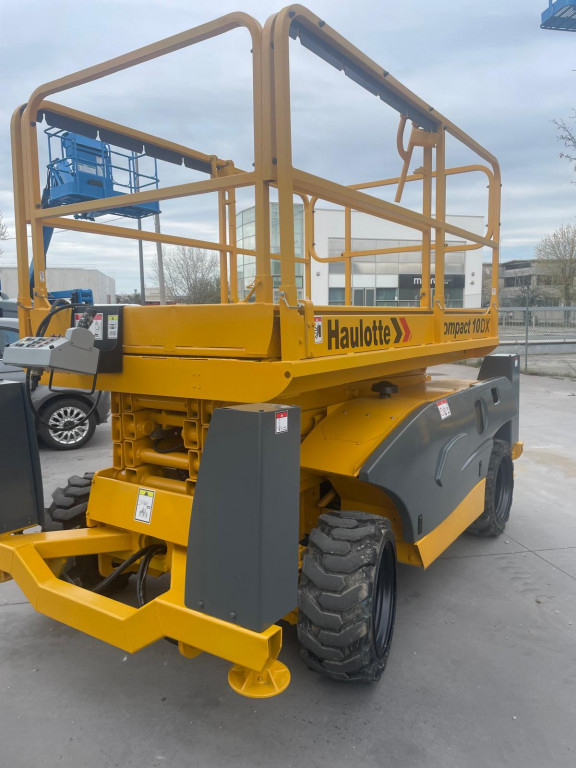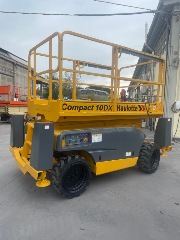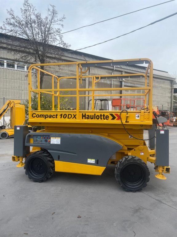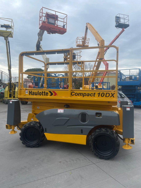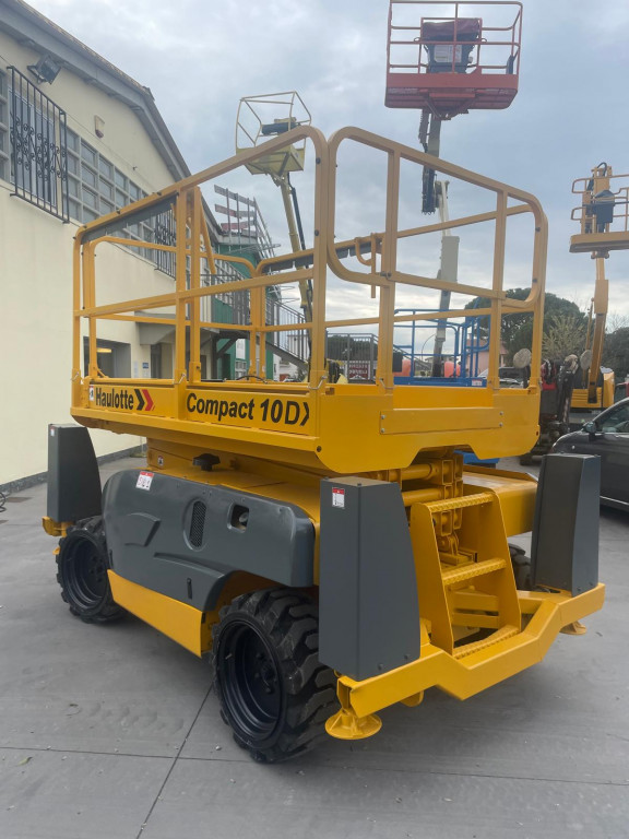 Piattaforma a pantografo di marca Haulotte modello COMPACT 10DX di portata 565 kg, con propulsione Diesel, altezza di lavoro 10,00 mt, in vendita.