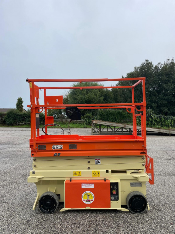 Piattaforma a pantografo di marca JLG modello 6RS di portata 230 kg, con propulsione Elettrica, altezza di lavoro 7,79 mt, in vendita.