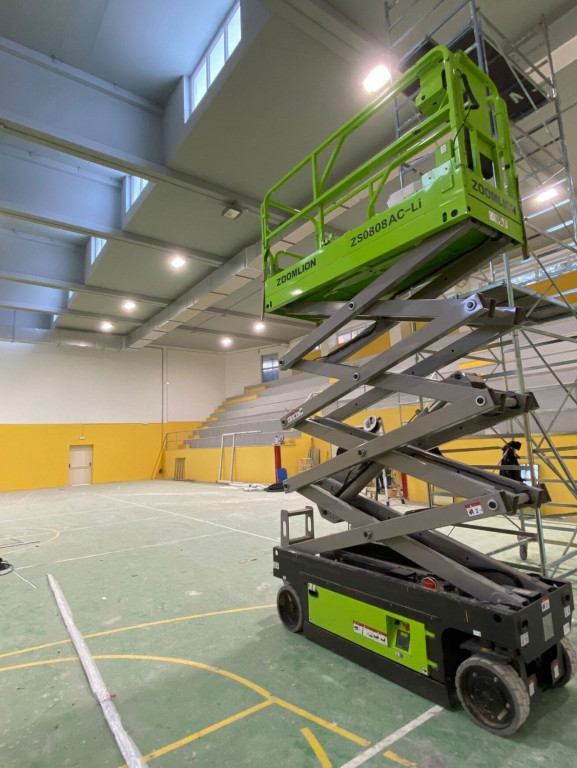 Piattaforma a pantografo di marca Zoomlion modello ZS0808AC di portata 230 kg, con propulsione Elettrica, altezza di lavoro 10,00 mt, in vendita.