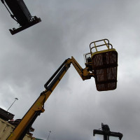 Piattaforma articolata di marca Haulotte modello Pinguely di portata 250 kg, con propulsione Diesel, altezza di lavoro 21,00 mt, in vendita.