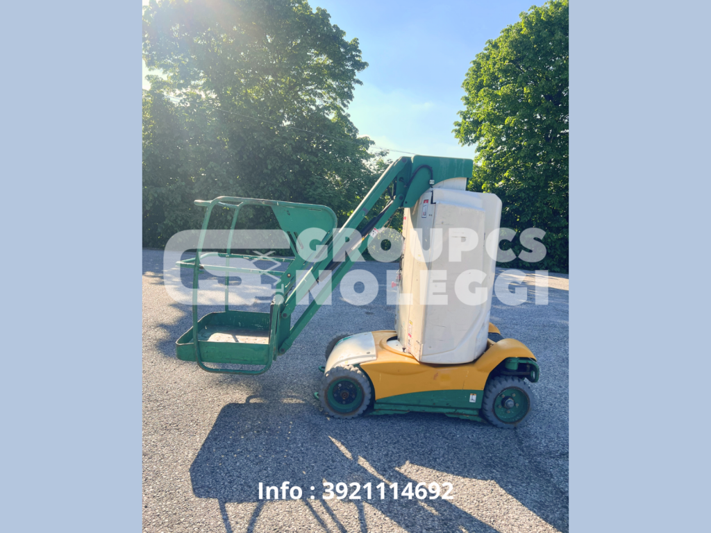 PIATTAFORMA AEREA SEMOVENTE ELETTRICA Altezza lavoro: mt 10,00 Altezza piano calpestio: mt 8,00 Altezza a riposo: mt 1,99 Larghezza: mt 1,00 Lunghezza: mt 2,70 Sbraccio - estensione: mt 3,00 Dimensione piano lavoro: mt 0,78 x mt 0,99 Peso: kg 2.735 Portata massima: kg 200 Condizioni generali: Revisionata e pronta all'uso Batterie testate e cariche Nessuna perdita Pronta consegna in tutta Italia Macchina visibile su appuntamento presso la nostra sede di Ponte di Barbarano (VI) Per informazioni e prezzo contattare il numero 392 1114692