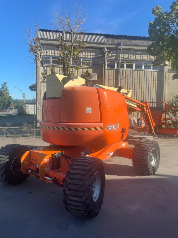 Piattaforma articolata di marca JLG modello 450AJ di portata 230 kg, con propulsione Diesel, altezza di lavoro 16,00 mt, in vendita.
