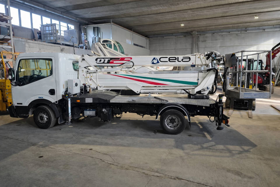 Piattaforma autocarrata articolata di marca Cela modello DT 25 di portata 230 kg, con propulsione Diesel, altezza di lavoro 25,00 mt, in vendita.