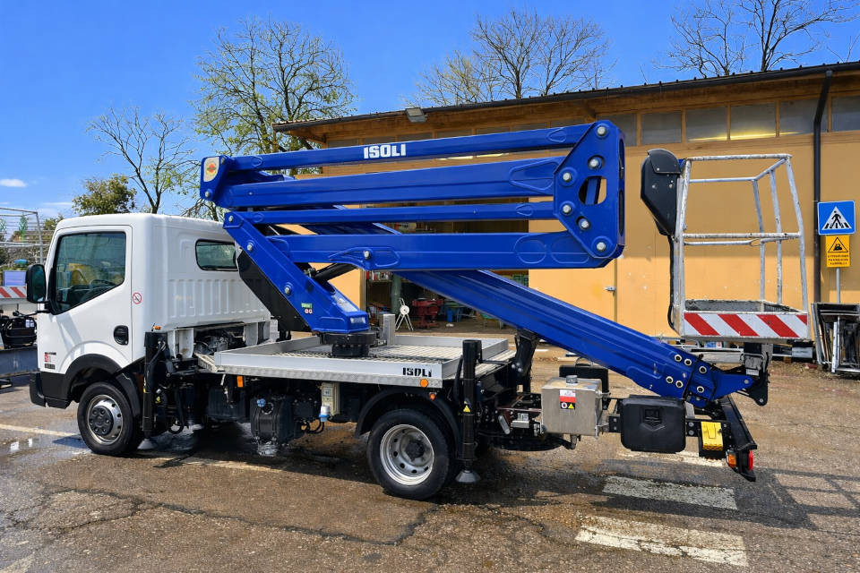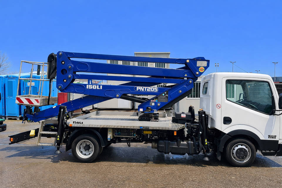 Piattaforma autocarrata articolata di marca ISOLI modello PNT 205 NH di portata 230 kg, con propulsione Diesel, altezza di lavoro 20,00 mt, in vendita.
