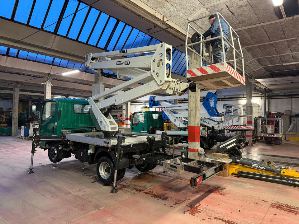 PIATTAFORMA AEREA AUTOCARRATA Isoli PNT 220 NLX Anno 2019 Altezza di Lavoro 22 m Sbraccio Laterale11 m Portata cestello 250 KG Ore 2100 Km 16000 Controllata da officina autorizzata Isoli Completa di tutti i documenti