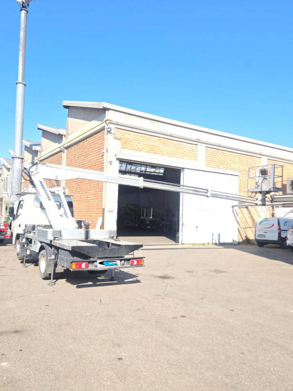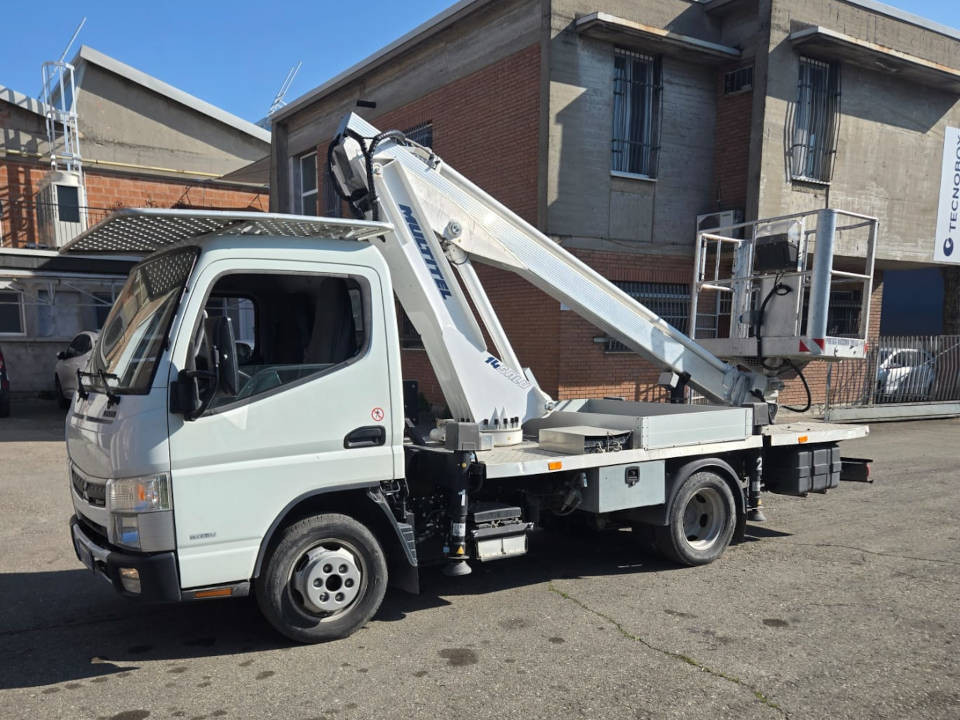 PIATTAFORMA AEREA SU CAMION Multitel ALU 145 Anno 2020 Installata su Mitsubishi Fuso Altezza lavoro 14,7 m Sbraccio laterale 7,7 m Portata cestello 200 kg Ore lavoro 1.800 km 30.000 circa Tutto funzionante e controllato da officina autorizzata Multitel