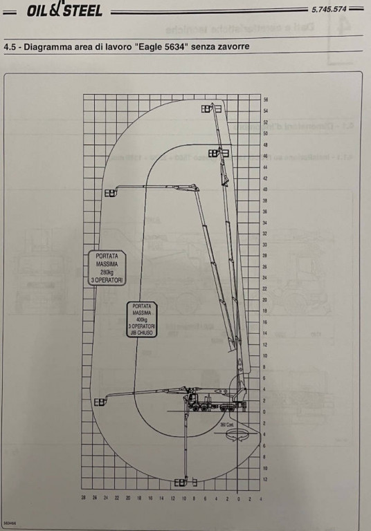 Piattaforma autocarrata articolata di marca Oil&steel modello 56.27 di portata 400 kg, con propulsione Diesel, altezza di lavoro 56,00 mt, in vendita.