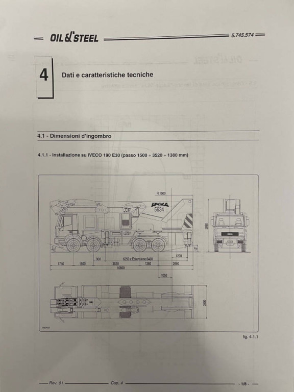 PIATTAFORMA SU CAMION Oil&Steel 56.27 Stabilizzatori in sagoma e aperti Anno 1996 Altezza lavoro 56 metri Sbraccio max di lavoro 27 metri Rotazione torretta 360° continui Rotazione idraulica del cestello 90°+ 90° Portata cestello 400 kg Ore 7000 Km 300.000 Buone condizioni generali