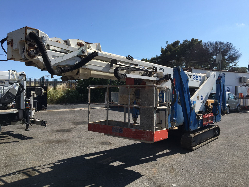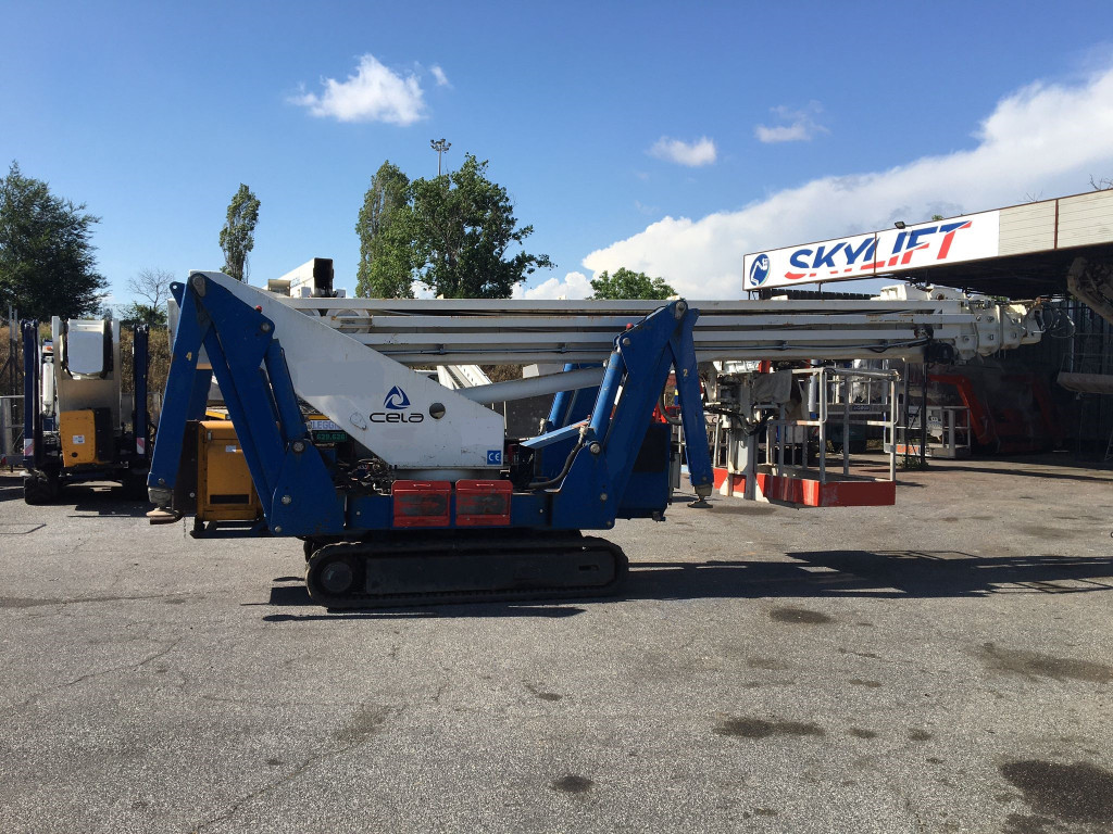 Piattaforma ragno cingolata di marca Cela modello Spyder 350 di portata 200 kg, con propulsione Diesel, altezza di lavoro 35,00 mt, in vendita.