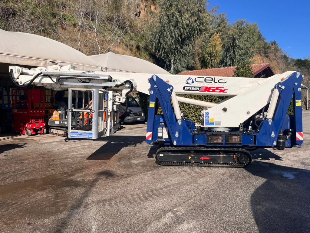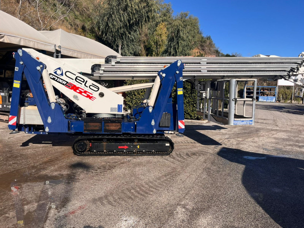 Piattaforma ragno cingolata di marca Cela modello Spyder 365E di portata 200 kg, con propulsione Diesel, altezza di lavoro 36,50 mt, in vendita.