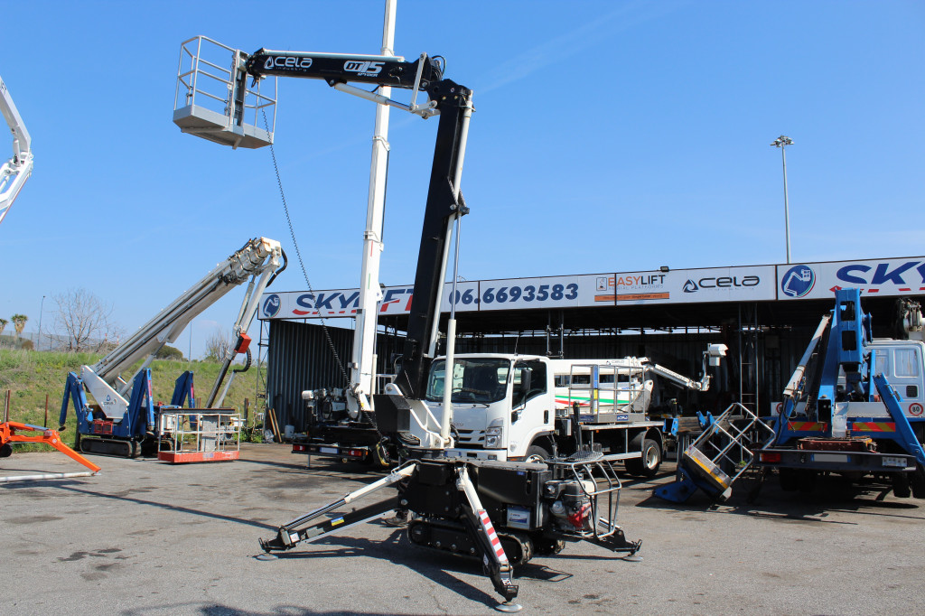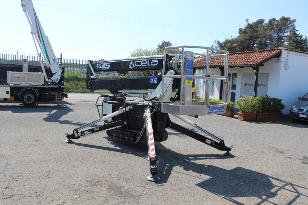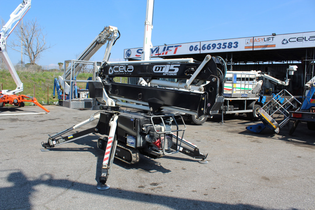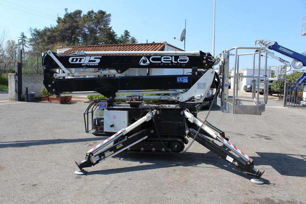 Piattaforma ragno cingolata di marca Cela modello SPYDER DT15 di portata 200 kg, con propulsione Diesel, altezza di lavoro 15,00 mt, in vendita.