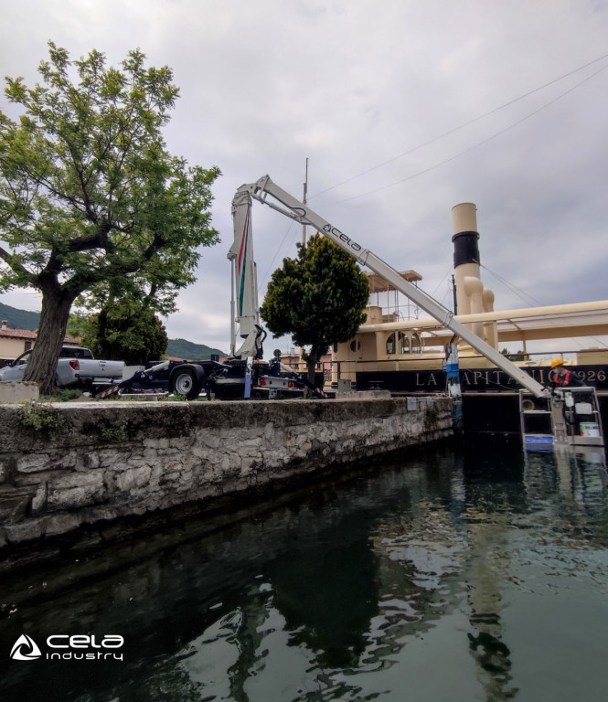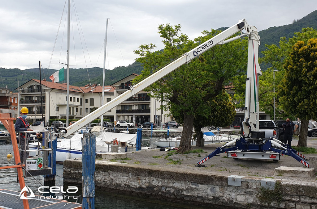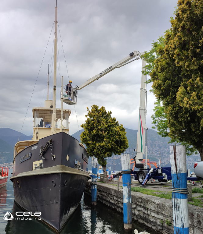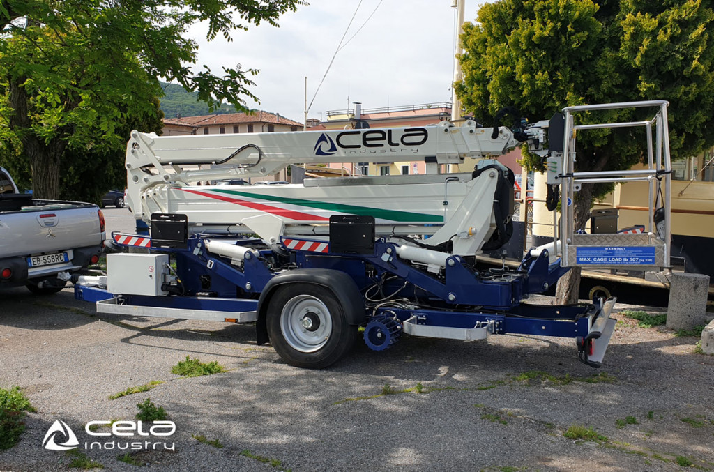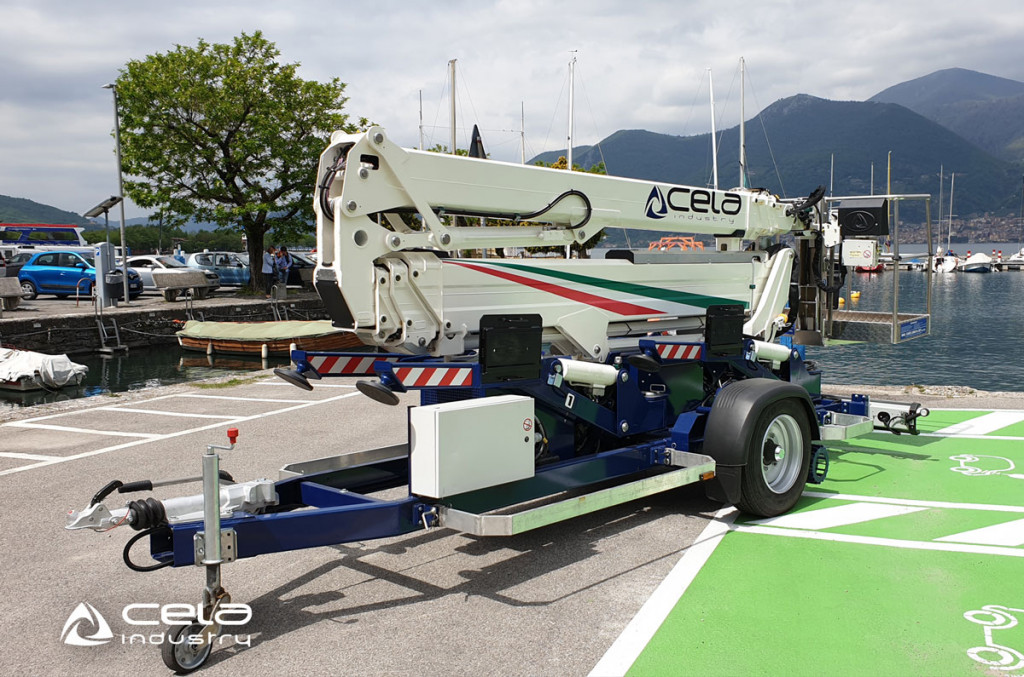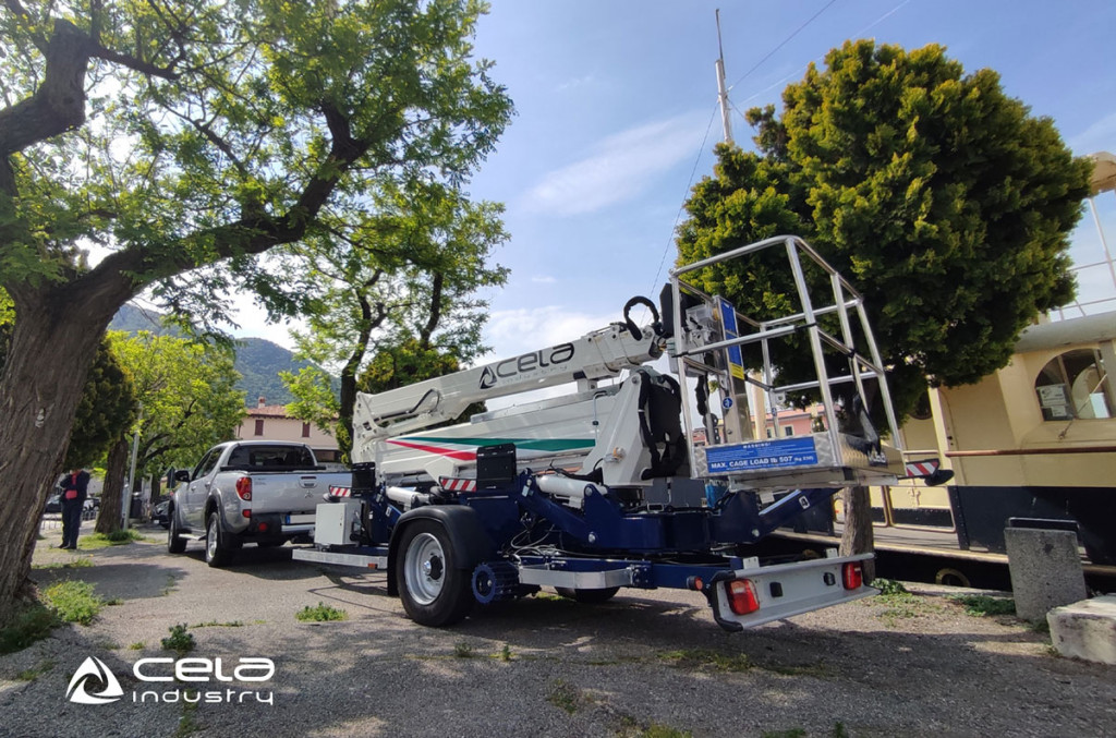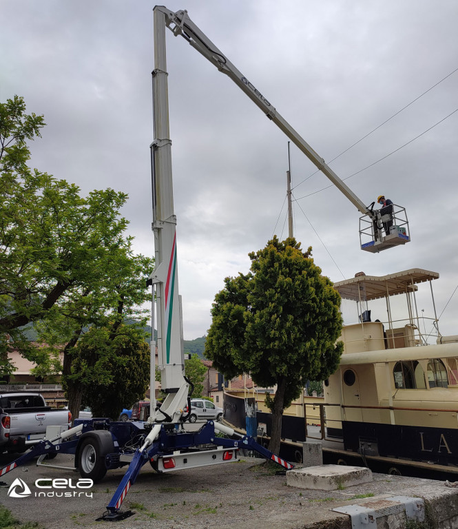 Piattaforma trainabile articolata di marca Cela modello DT Trailer 22 di portata 230 kg, con propulsione Diesel, altezza di lavoro 22,00 mt, in vendita.